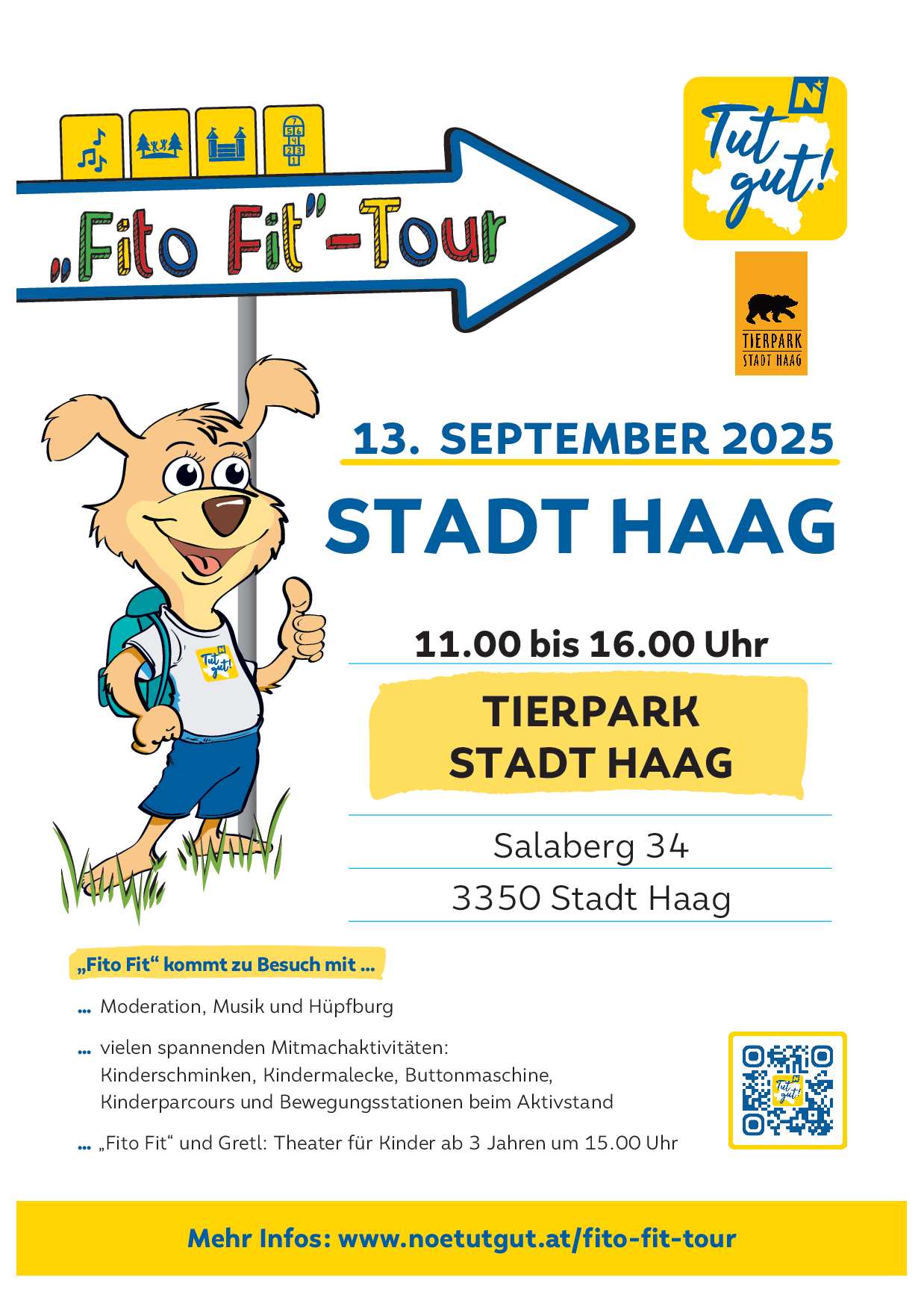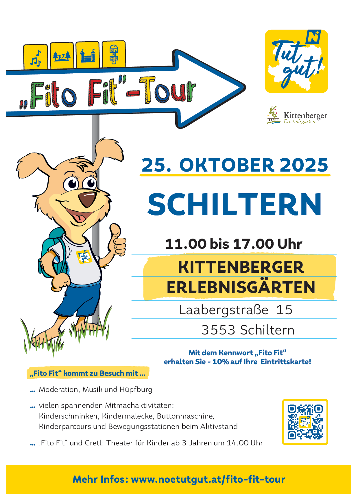 Das „Tut gut!“-Kindermaskottchen namens „Fito Fit“ ist wieder unterwegs in Niederösterreich!